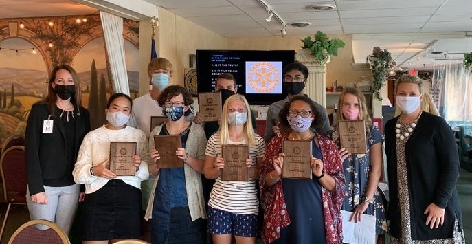 Pictured with the students are Assistant Principal Renee Kramer and Rotarian Liz Muether.