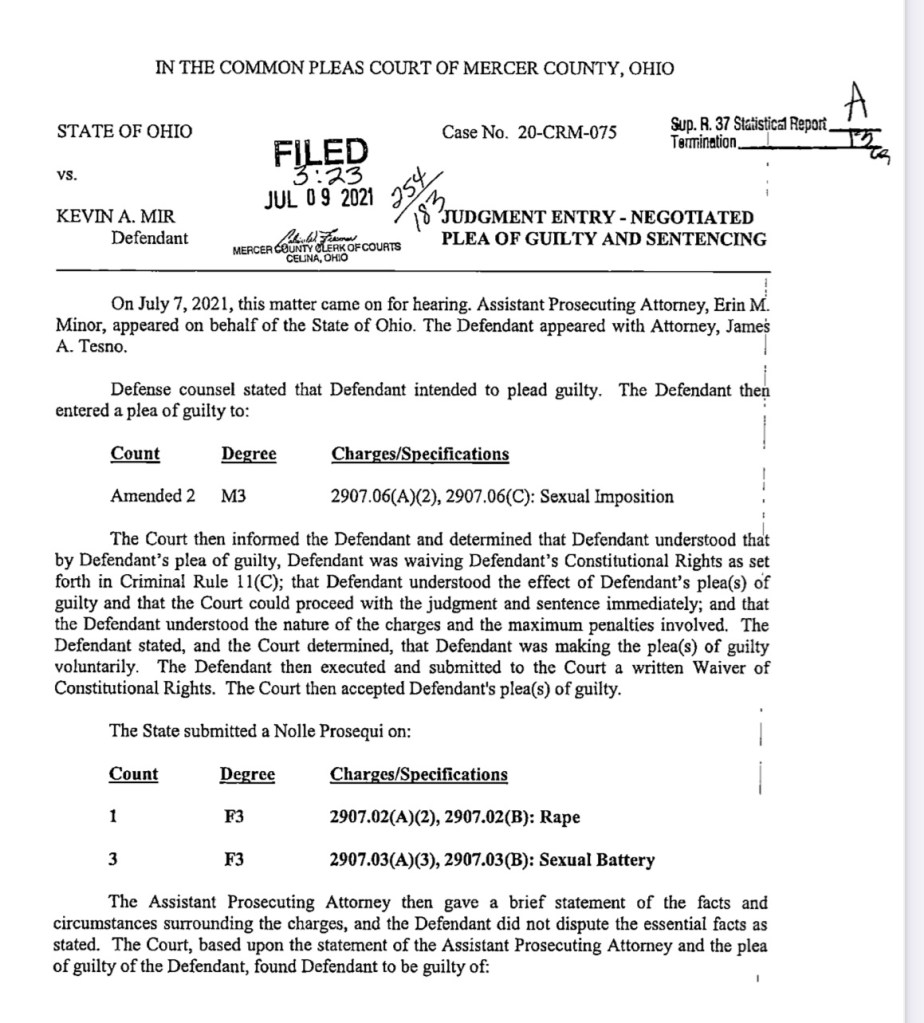 (10-3-20) Kevin Allen Mir (52) of Celina has been arrested on five felony sex related charges.