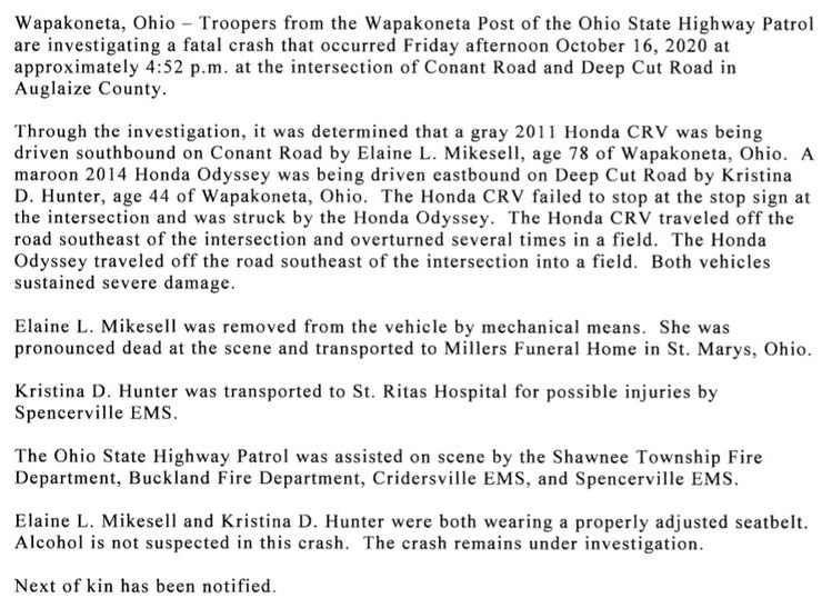Accidents, local news, Uncategorized Wapakoneta Woman Loses Life In Auglaize County Crash Date: October 17, 2020Author: statelinesportsnetwork 0 Comments Share this: Click to share on X (Opens in new window) X Click to share on Facebook (Opens in new window) Facebook Like Loading... Related