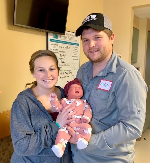 Harper, was born at 9:21 p.m. on January 23, 2021 and weighed 8 lbs., 13 oz.