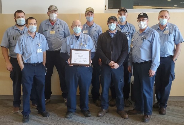 Plant Operations team is pictured. Back (L to R): Lance Wacker, Mark Fleck, Adam Webster, Kevin Mestemaker, Dave Uhlenhake Front (L to R): Bill Schoenherr, Kim Plattner, Robb Kincaid and Marv Bruns.