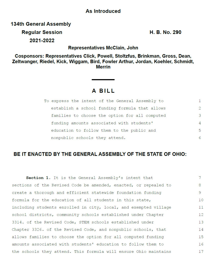 That could all change...Republican House lawmakers have introduced a measure making any Ohio school child eligible for the state voucher program. . The proposal comes as Ohio lawmakers are considering changing how the state funds education to address disparities between poor and rich districts.