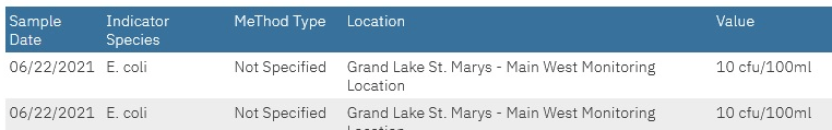 An outdated sign had not yet been removed, and is in the process of being removed today. Presently, there are blue signs posted at Grand Lake St. Mary’s indicating that an algal bloom has been visually detected, and that samples have been collected and are pending laboratory analysis. There have been no reports of illness at this time. For the most up-to-date information on beach water quality and advisories in Ohio, visit BeachGuard at http://publicapps.odh.ohio.gov/beachguardpublic/. More information on HABs is available at www.ohioalgaeinfo.com or by calling 1-866-644-6224.