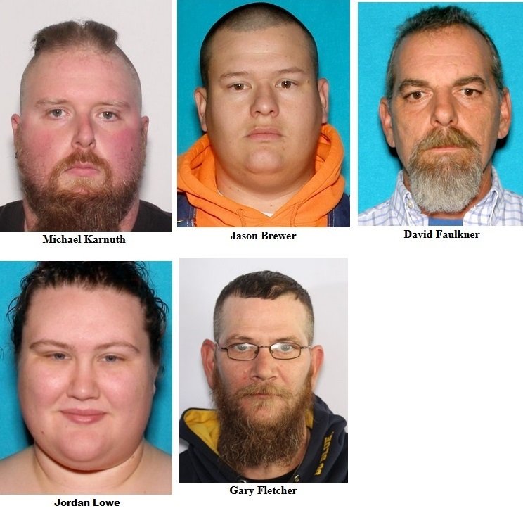 According to the probable cause affidavit, multiple individuals alleged to be involved in criminal gang activity went to the property in Dupont with the alleged intent to beat up a man and take his personal property. Brewer, Faulkner, Fletcher, Karnuth and Lindner were armed with multiple weapons when they entered the property in search of the man. Shots were exchanged, and a bullet struck one of the individuals in the group during the incident. The deceased has been identified as Dustin Lindner (35) of Georgetown, Kentucky. Next of kin have been notified.