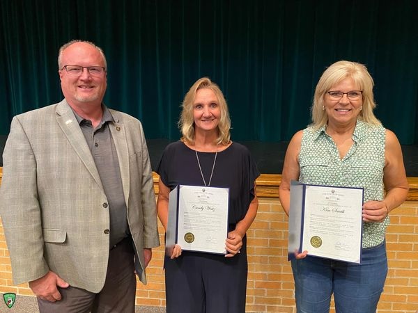 (7-31-21) Celina City Schools Nurses Candy Weitz and Kim Smith were recognized at yesterday’s Special School Board of Edubation Meeting by Celina’s Keith Faber’s Ohio Auditors Office. The two were honored for going “above and beyond” in their work during the COVID-19 Pandemic.