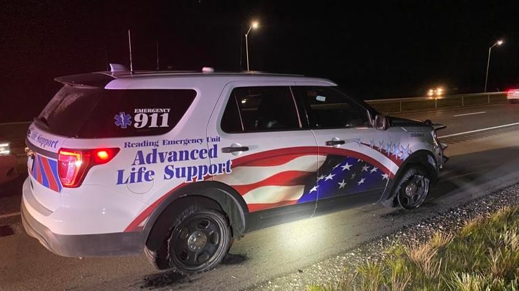 The stolen vehicle a Ford Explorer belonging to Reading Emergency Unit, out of Hillsdale County, Michigan was spotted while an officer was sitting at the cross-over at the 329 mile marker on Interstate 69.