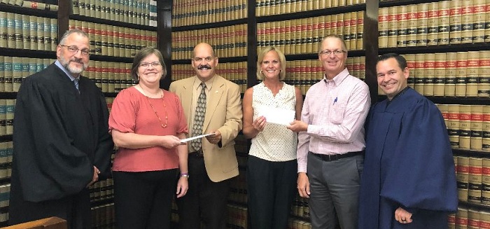 Pictured are (left to right) Judge Matthew L. Gilmore, Nancy Freeman, Clerk Cavin Freeman, Sandy Ranly, Treasurer Dave Wolters and Magistrate Richard M Delzeith.
