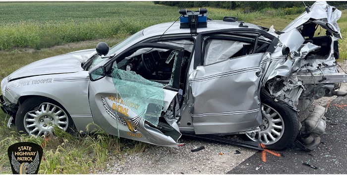 Troopers determined Justin R. Johnson (28) of Defiance, was driving a 1998 Chevrolet S-10 pickup truck when it ran off the right side of the roadway and struck Sergeant Chavez’ patrol car, a 2019 Dodge Charger.