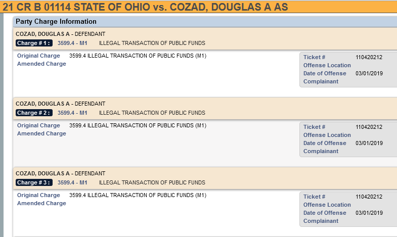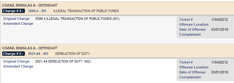 The charges also accused Cozad, Betz, Carpenter, Kingston and Slouffman of authorizing the payment of public funds for a mailer that