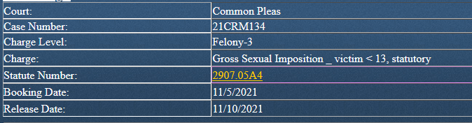 (11-11-21) Wilson Curry (63) of Celina has been charged with two 3rd Degree Felony counts of Gross Sexual Imposition. According to court records, Curry is accused of having sexual contact with a female under the age of 13 during the month of May in 2021 and again during August of 2021.
