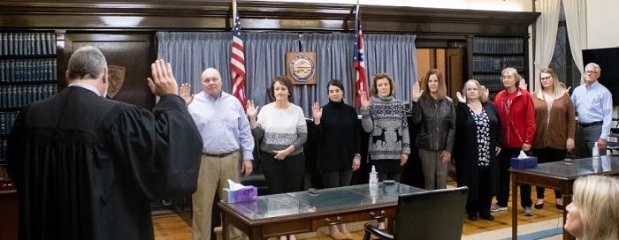 (12-21-21) CASA of Mercer County is pleased to announce that it has sworn in 9 volunteers in its inaugural swearing-in ceremony for the Mercer County Juvenile Court on December 20, 2021. Mercer County Probate/Juvenile Court Judge Matthew L. Gilmore presided over the ceremony and sworn in the new volunteers. Mercer County Juvenile Court Magistrate Richard M. Delzeith was present as the Court Administrator for CASA of Mercer County. CASA of Mercer County Executive Director Nick Schulze and Coordinator of Volunteer Services Kip Wright were also present.