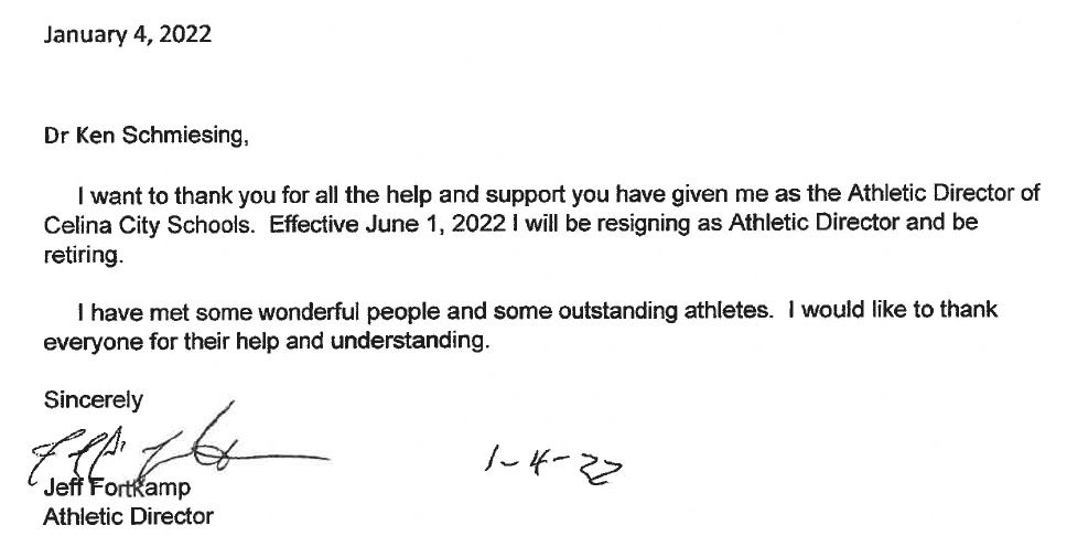 Jeff Fortkamp after 8 years as Athletic Director will retire on June 1st. Before working at High School Fortkamp was the City of Celina’s Park and Recreation Director. The search for a new AD will start in February.