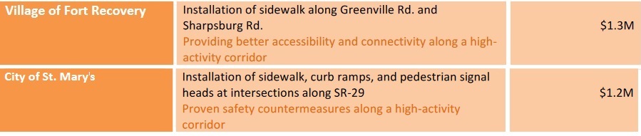 Locally Ft. Recovery and St. Marys both received two of the 51 grants –