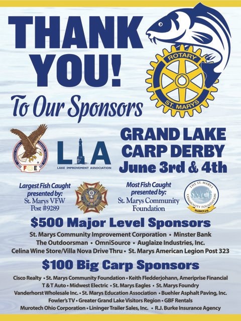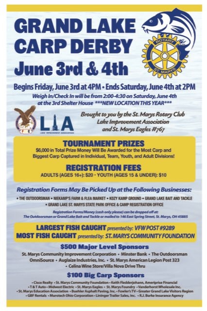 The Carp Derby is brought to you by the St. Marys Rotary Club, the Lake Improvement Association and St. Marys Eagles #767.