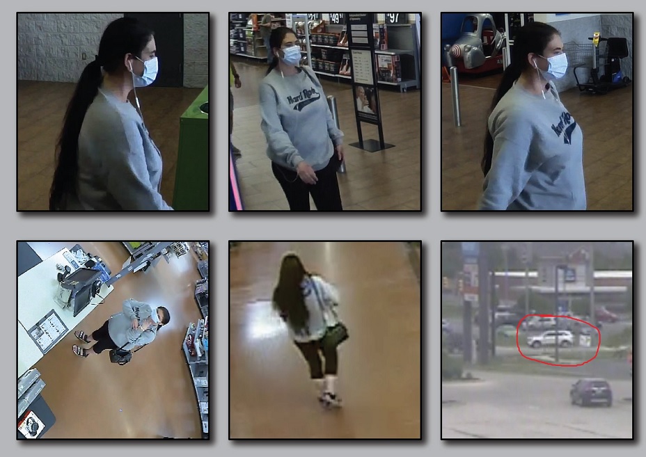 (6-1-22) The Mercer County Sheriff’s Office is seeking the public’s help in identifying the person in these photos. This woman may have information about a theft that took place in Montezuma. The suspect in the theft case stole a purse and attempted to purchase $1,500 worth of Visa gift cards with the victim’s credit card. The suspect parked their white SUV in the Aldi’s parking lot and walked across the street to Walmart to commit this crime. This same suspect is also a suspect in a similar theft case out of New Bremen.