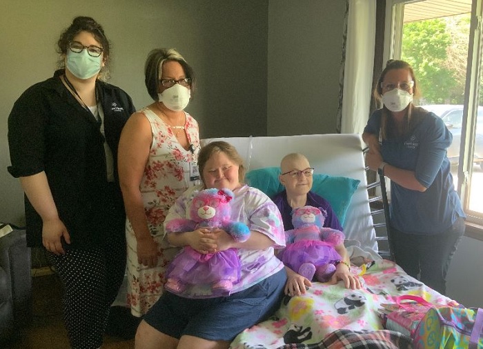 Margaret’s care team from EverHeart Hospice, including Nicole Puderbaugh, Hospice Aide, and Amy Pearson and Jeralayne Ruiz, Music Therapists, also joined in on the fun, taking turns helping her with the stuffing and dressing the bear in its bright purple dress and glasses. Amy even led both girls in a special wish ceremony to bring their bears to life.