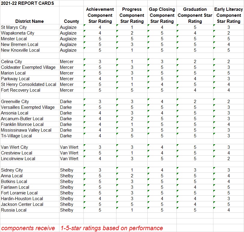 (9-18-22) Report cards for school districts across Ohio were released Thursday by the Ohio Department of Education for the 2021-22 academic year.