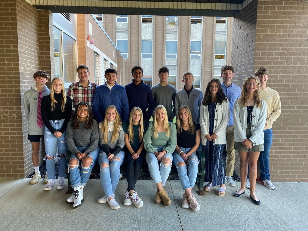 2022 Homecoming Court = front row left to right, Ellie Hitchcock, Michelle Elston, Riley Seitz, Raven Harris, Payton Bertke, Evie Holstad, Jaclynn Felver, Isabelle Thobe. Back row left to right, Carter Jeffries, Logan Gates, Landen Ackley, Layndin Alidou, Adam Faber, Nick Adams, Jonathon Lutz and Parker Bertke.