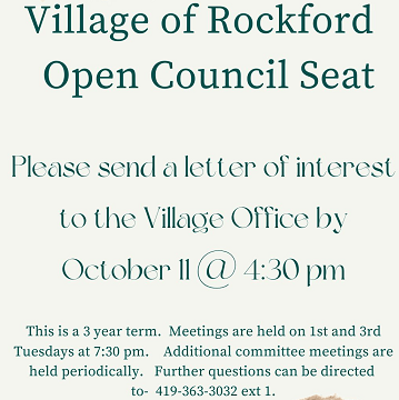 (10-6-22) The Rockford Village Council is looking to replace another member. At this week’s Council meeting it was announced that Jessica Yoder had resigned effective on October 3rd. Yoder has been a council member since January, the council will have have replaced three members since the start of 2022.
