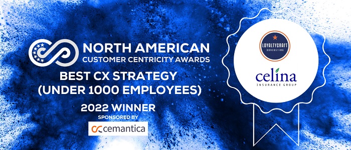 The award recognizes one North American company for its superior customer experience strategy. Expert industry judges chose Celina and its partner, LoyaltyCraft Consulting, from nine finalists in the category.