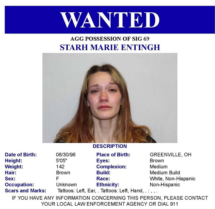(11-2-22) The Darke County Sheriff’s Office is asking for the public’s help to locate Corey Garber and Starh Entingh. They are known to frequent the Greenville and Gettysburg area. Please remember, do NOT attempt to apprehend these individuals.