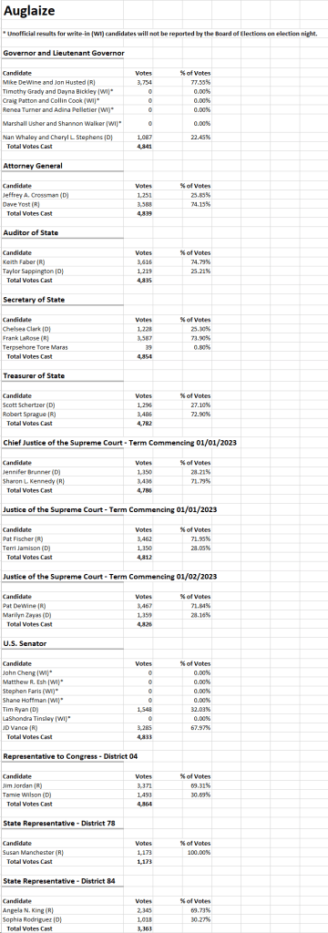 COMPLETE – Results from the Secretary of State Frank LaRose