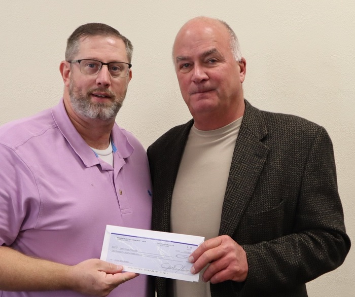 Mercer County Fairgrounds – $2,500.00 to build a shelter house on the fairgrounds. CCF trustee Steve Butcher with Bruce Swonger