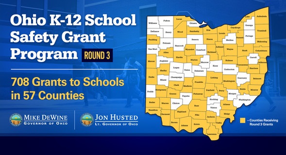 Today’s announcement represents the third round of grants awarded as part of the Ohio K-12 School Safety Grant Program. In the first round, $5 million in state funding was awarded to 95 schools in 27 counties. Governor DeWine then partnered with the Ohio General Assembly to increase funding for the program by an additional $100 million, and he announced the availability of the second round of funding in August, totaling $42.2 million for 1,065 schools.