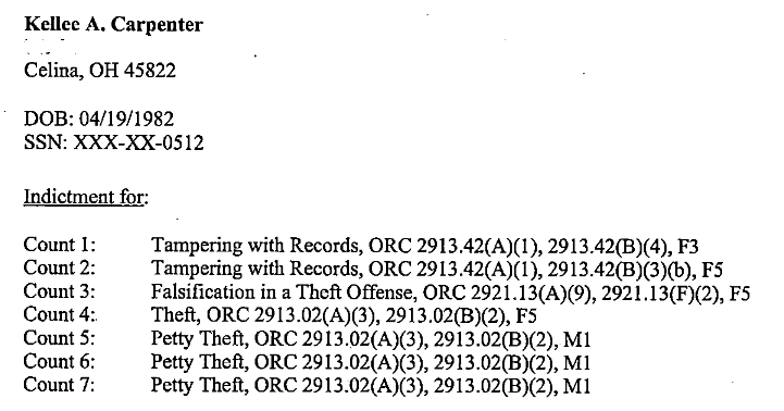 The Mercer County Grand Jury indicted (see below) Carpenter in Mercer County Common Pleas Court on January 19th.