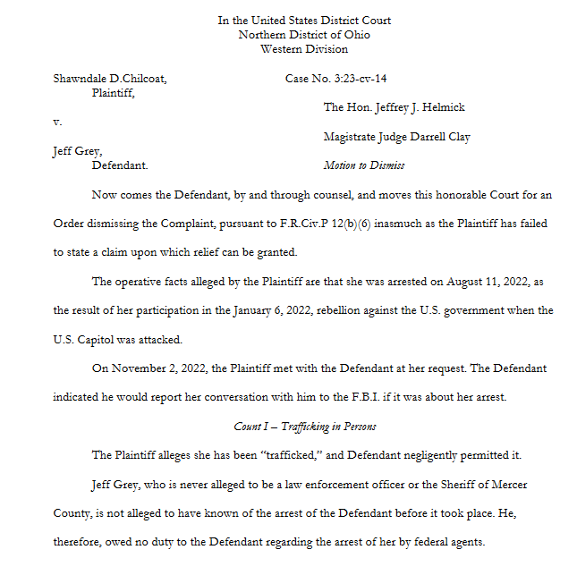 A motion was made by Sheriff Grey’s representatives on January 18th in US District Court Northern District of Ohio-Western Division to dismiss the case.