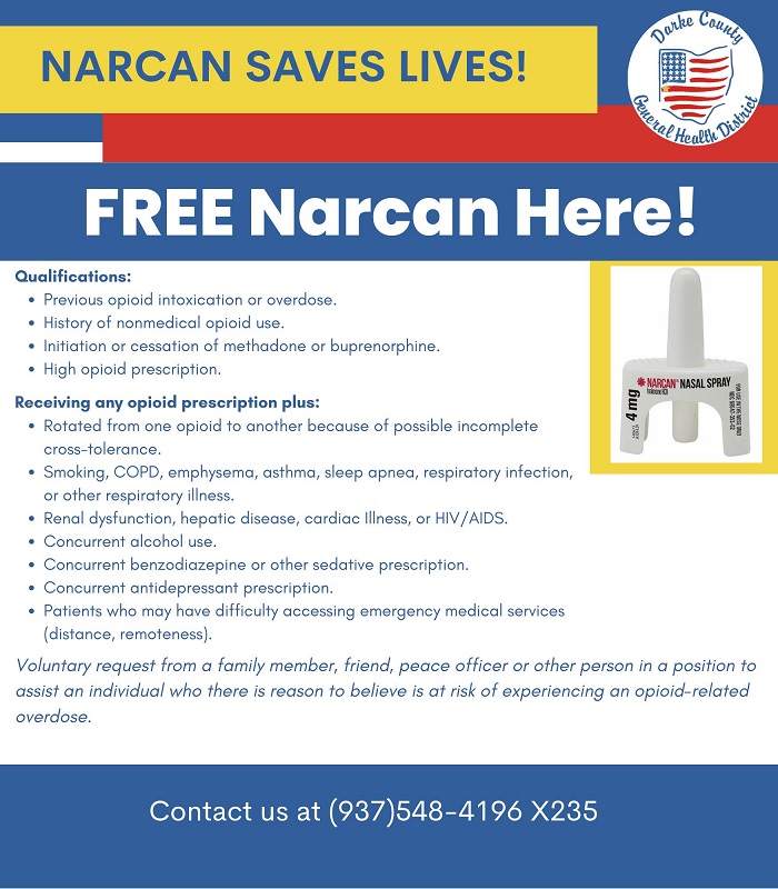 Those interested in the free Narcan distribution and who meet the guidelines can contact the department at 937-548-4196 ext. 235.