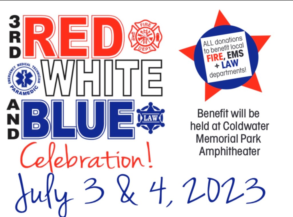 (6-17-23) Community Sports and Therapy Center is proud to announce that we will be sponsoring the third RED, WHITE, AND BLUE Celebration at Coldwater Memorial Park Amphitheater on the evenings of Monday, July 3rd and Tuesday, July 4th. This year is a two-evening event!