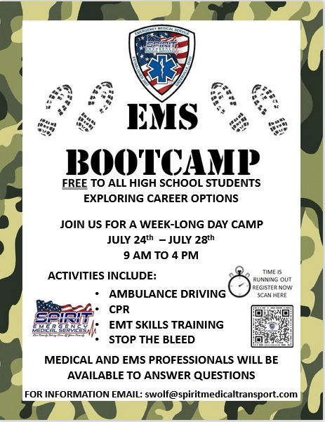 EMS bootcamp deadline for high school students approaches, Spirit EMS to host week long EMT camp