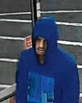The man was wearing a blue hoodie sweatshirt and jeans.