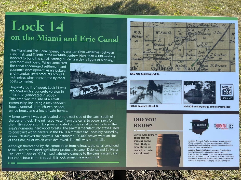 (10-2-23) The Auglaize County Historical Society celebrated this past weekend the history of the county and its 175th year celebration by placing three historical markers…one in Wapakoneta, one in Buckland and one at Lock 14.