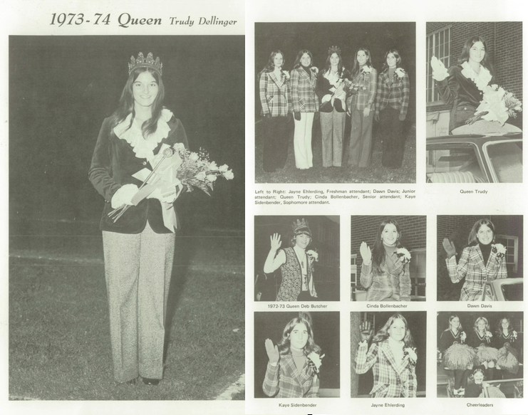 Front Row: Senior Queen candidates: Emma Prichard, Frankie Steinbrunner, Avery White. Back Row: Class attendants: Freshman Madelyn Stover, Sophomore Olivia Clifford, Junior Meah Suzuki.