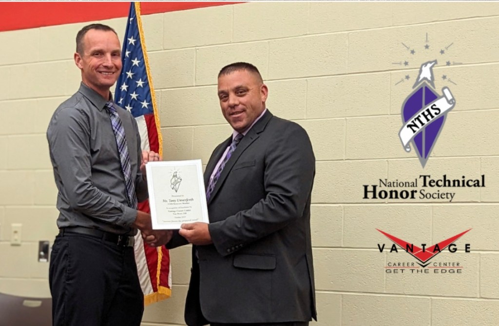 Vantage Career Center recently held their annual National Technical Honor Society ceremony, inducting 39 students into its membership, however, it was not rjust students being recognized. Mr. Tony Unverferth, social studies teacher at Vantage, received an Honorary Membership into the National Technical Honor Society due to his significant service and leadership contributions as an advisor, teacher, and community member. Congratulations, Mr. Unverferth.