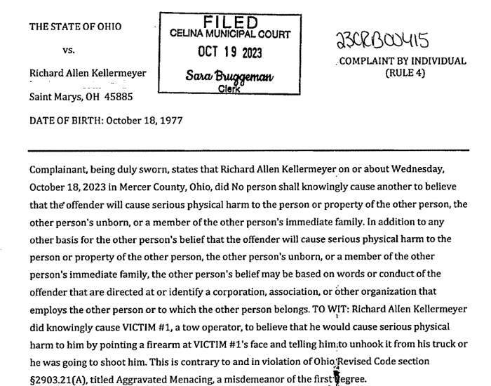 Kellermeyer was taken to the Mercer County Adult Detention Center where he posted bond and was released prior to making his initial court appearance on Friday at 9am in Celina Municipal Court.