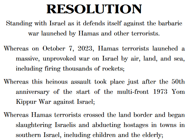 - Members of the “Squad”, Alexandria Ocasio-Cortez, Rashida Tlaib, Ayanna Pressley, Ilhan Omar, Jamaal Bowman, and Cori Bush, failed to cosponsor H.Res. 771, “Standing with Israel as it defends itself against the barbaric war launched by Hamas and other terrorists.”