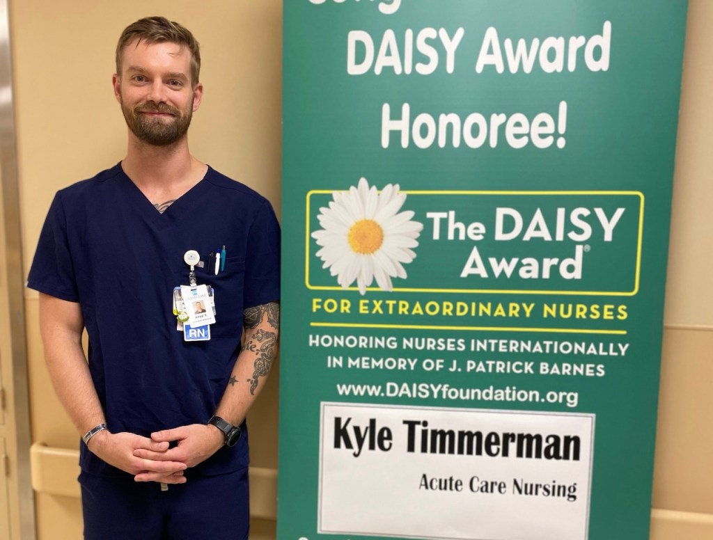 St. Marys OH (10-27-23) – Kyle Timmerman of Joint Township District Memorial Hospital was recently honored with The DAISY Award(r) For Extraordinary Nurses. The award is part of the DAISY Foundation’s programs to recognize the super-human efforts nurses perform every day.