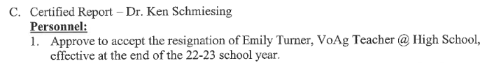 Last night the BOE approved Sadie Devore to be the the new Vo Ag teacher starting in January of 2024.