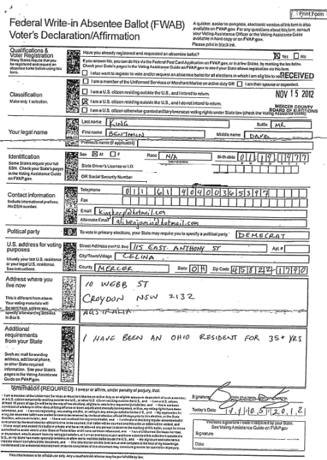 King (a registered Democrat) voted early in the November general election and is the brother of Jason King, the Celina City Council president (Republican) and the brother-in-law to State Rep. Angie King (R-Celina).