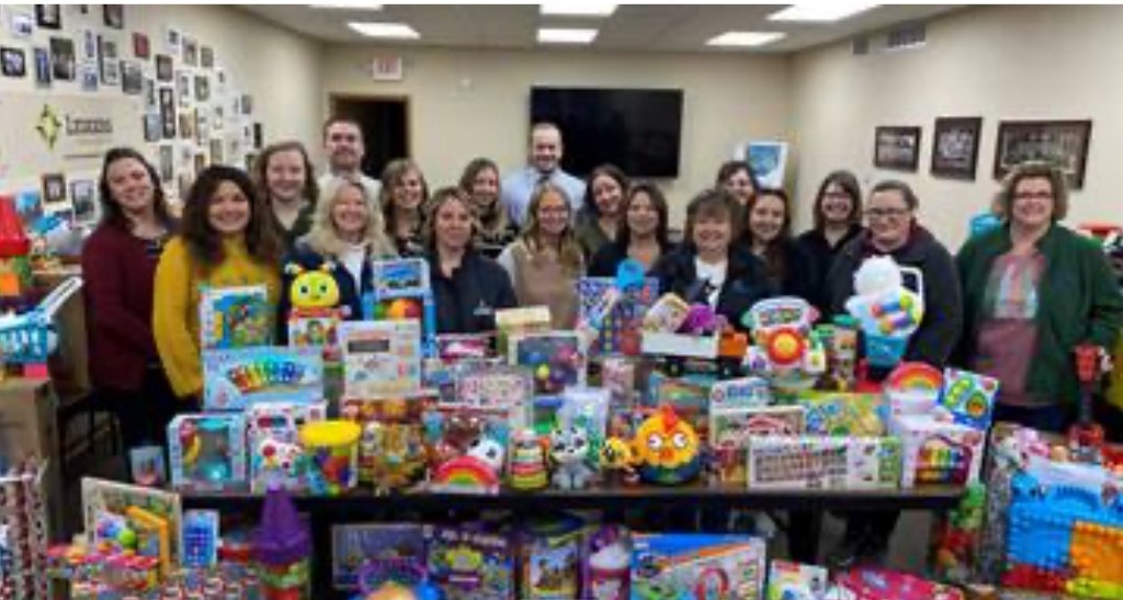 (12-22-23) Leugers Insurance Agency made their 12th Annual holiday donation to Help Me Grow and Ohio Early Intervention programs of Mercer, Auglaize & Shelby Counties. Donations were accepted at all Leugers Insurance Agency offices throughout the year. Items collected were for children ages 0-3 and included books, puzzles, educational games, and much more. Through the generosity of the community, agency partners and Leugers Insurance Agency employees, a very substantial contribution was presented to Help Me Grow and Ohio Early Intervention programs of Mercer, Auglaize & Shelby Counties. These donations will be used to assist many families in the tri-county area this holiday season.
