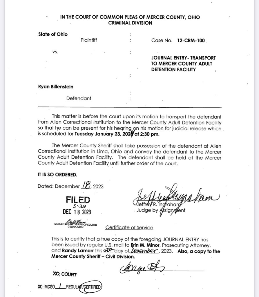 Billenstein, now 39, has asked for Judicial Release from his 13 year sentence.