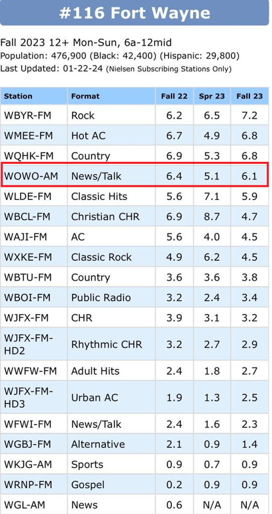 As for Miller still being a part of the team….so is the WOWO ‘world famous fire escape‘ which is just a memory of the past and is no longer a part of the station’s current location. Miller, a strong conservative voice, knew Ft. Wayne and what was listeners wanted to know. His presence in the afternoon will be missed…so much for being local and loyal in the radio world.