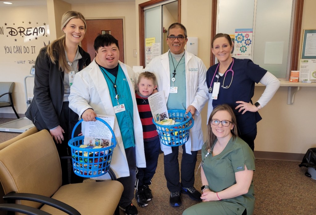 Grant Topp, along with his family and friends, donated socks to Joint Township District Memorial Hospital for patients and staff. Their hope is to help raise awareness of Down Syndrome and help to promote inclusion and acceptance of those who have Down Syndrome. This is their tenth year donating socks to the patients and staff of the hospital.