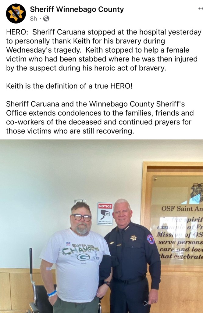 Winnebago County Sheriff Gary Caruana said that if Keith Fahrney hadn’t intervened, Lindsay Craig likely would have been killed. She is currently in serious condition at a local hospital.