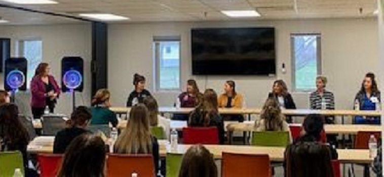 Team members from EverHeart Hospice, Emily Gariety, Human Resources Manager, and Ashlynn Beisner, Community Outreach Specialist, explained to the group what hospice is and the types of careers available within the organization. They expressed how direct care staff, like nurses and aides, make up most of their employees. However, the organization requires other departments such as HR, Business Development, Finance, IT, Bereavement, Social Work and Music Therapy to make the organization successful.