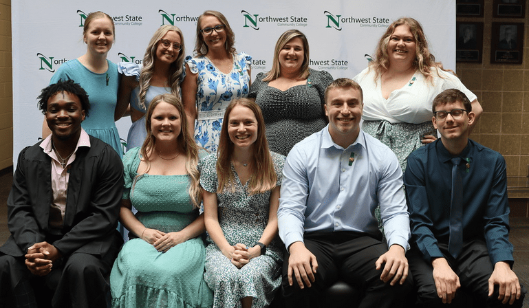 NSCC Alpha Delta Nu honor society members for spring 2024. Front Row: Mayer, Biliti, Meschberger. Back Row: Heffelfinger, Klopfenstein, Brown, Broshious, Lyons
