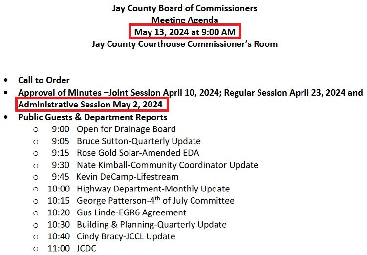 The May 2nd minutes were approved at the May 13th meeting, but have not yet been placed on the Jay County web site.